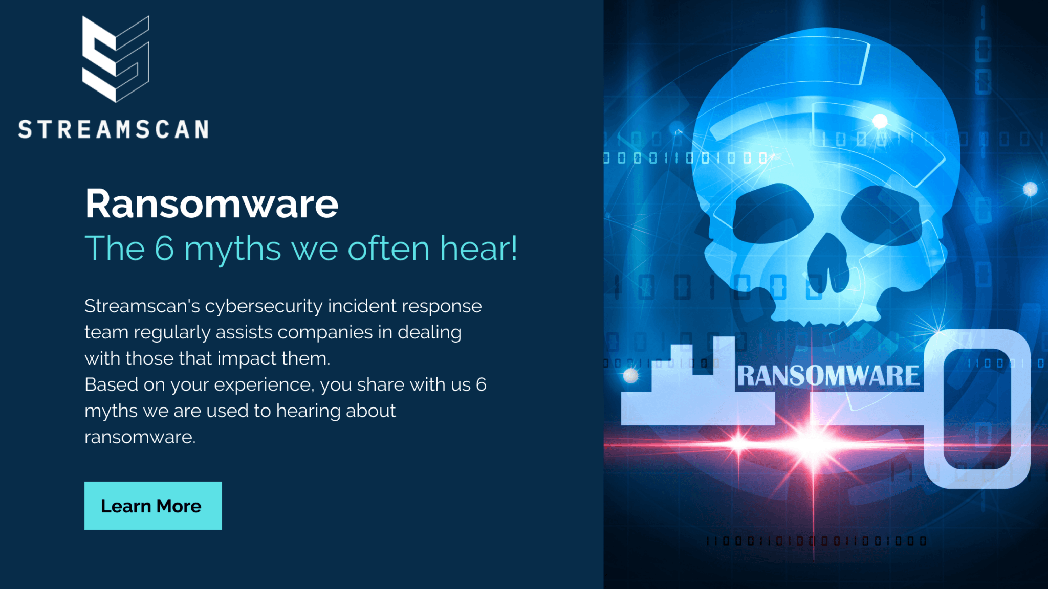 Streamscan's cybersecurity incident response team regularly helps companies manage the impact of ransomware attacks. Here are 6 common myths about ransomware, based on our years of field experience, that could be putting your networks at risk.
