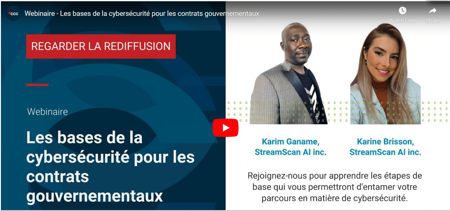 If you missed our webinar on cybersecurity basics for US and Canadian government contracts, you can view the recording here (French) : https://www.ccc.ca/fr/videos/fondements-de-cybersecurite-pour-contrats-gouvernementaux/