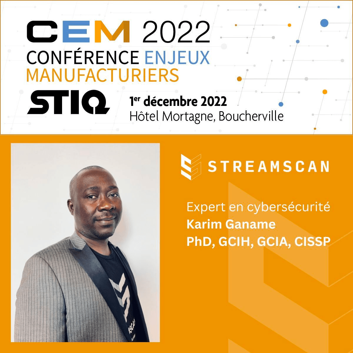 Le jeudi 1er décembre 2022, notre président et fondateur, Karim Ganame, aura le grand honneur de discuter de la cybersécurité à cette première édition de la Conférence Enjeux Manufacturiers (CEM)!